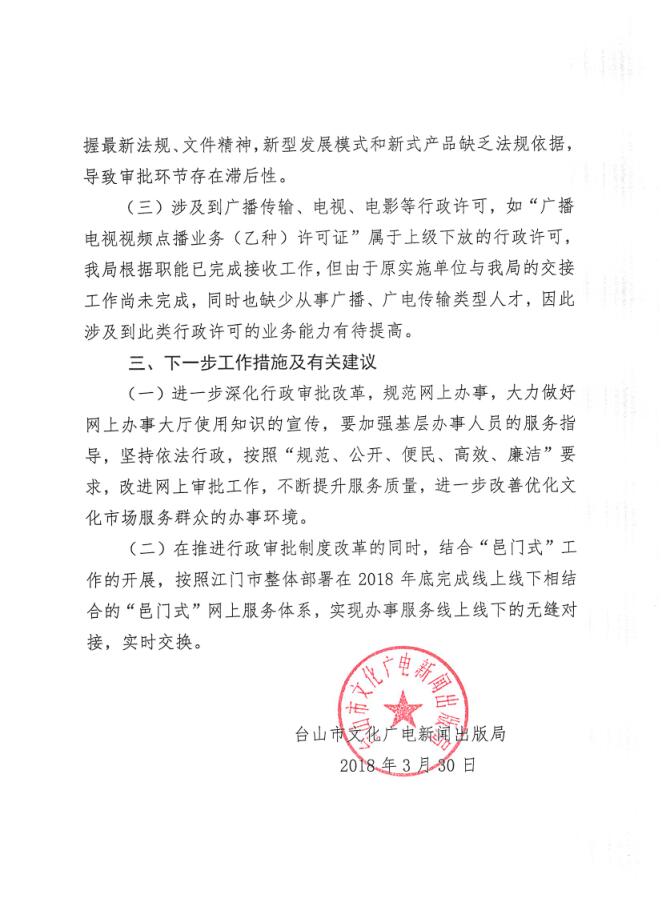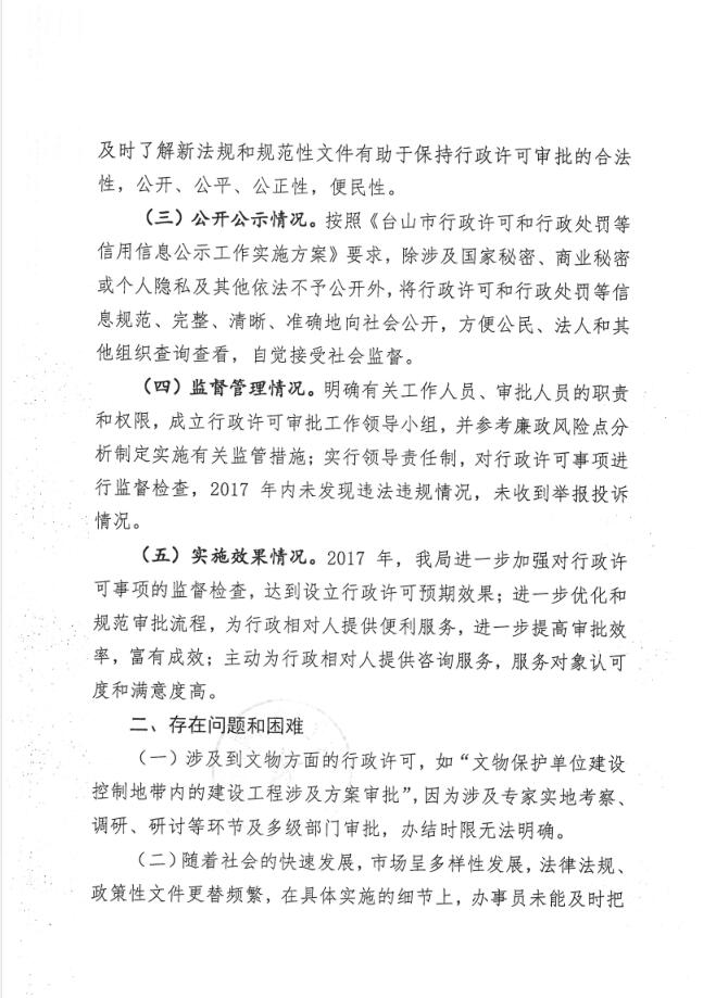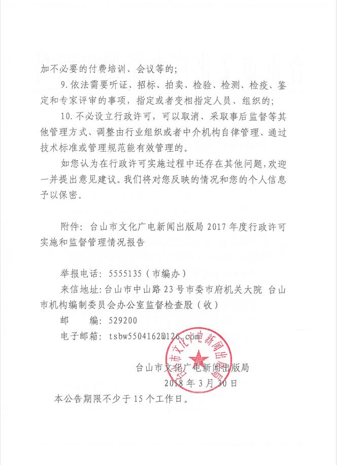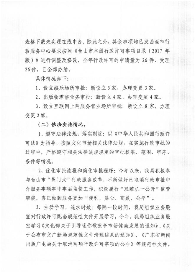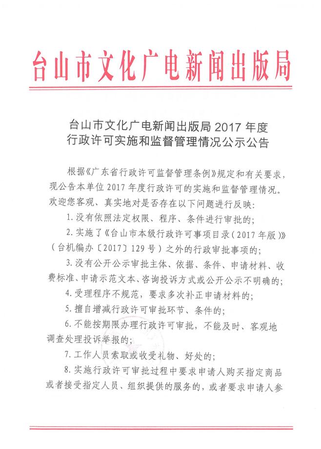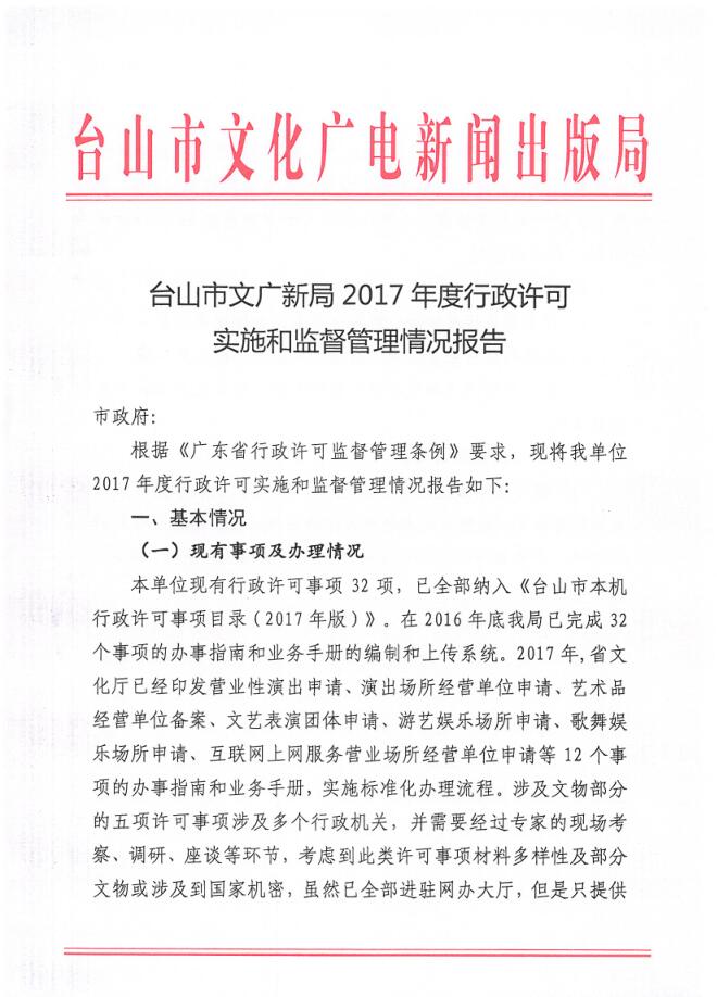 台山市文广新局2017年度行政许可实施和监督管理情况公示公告