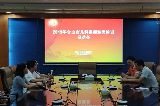 8月5日下午,2019年台山市儿科医师转岗培训启动会在市卫生健康局二楼会议室召开。市卫生健康局副主任科员胡敏东、局公卫股相关负责人、市妇幼保健院儿科转岗培训负责人、转岗培训人员等参加了启动会。