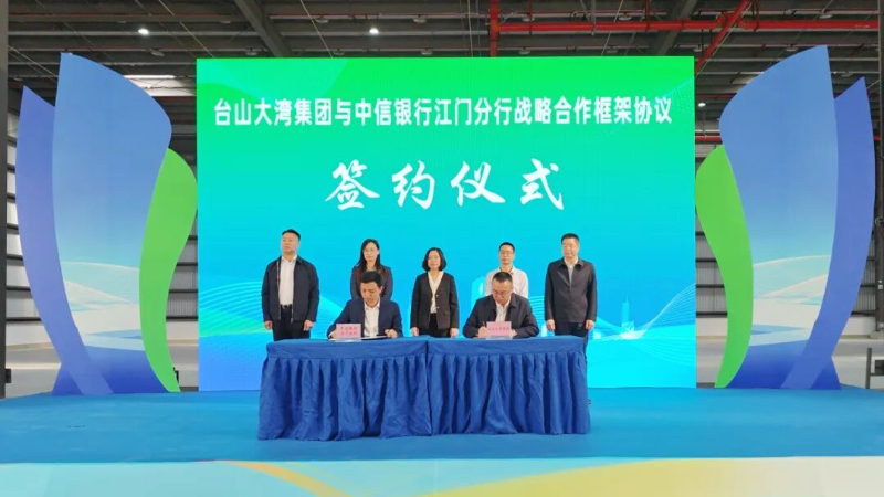 作为白沙园区首家落户的标杆企业,渭涞食品项目采用“国企实力+民企活力”的合资模式,由台山大湾控股发展集团有限公司下属企业——台山市大湾全供应链管理有限公司联合佛山市懿嘉商业管理有限公司、佛山市懿莱商业管理有限公司共同投资建设。项目总投资1.2亿元,规划用地29.8亩。项目致力于打造集研发、生产、展示于一体的现代化食品产业园,将引进全自动加工线、智能化深加工线及冷萃咖啡饮品生产线。全部建成投产后,预计年加工能力达1万吨,可实现年产值约1.5亿元,带动就业近200人。项目充分发挥国有企业在资源整合、政策对接方面的优势,结合民营企业机制灵活、市场反应快的特点,形成优势互补、协同发展的产业新格局。 活动中,台山大湾控股发展集团有限公司与中信银行江门分行签署战略合作框架协议。双方将重点围绕投融资服务、产业培育、园区运营等领域开展深度合作,共同拓展金融服务实体经济的广度和深度。 台山大湾集团是市属国有综合性产业投资运营平台,聚焦市政民生、园区开发、股权运营、农业投资及供应链管理等板块,持续为地方产业结构优化与经济社会高质量发展注入国企动力。中信银行江门分行长期深耕台山,为当地经济发展提供了坚实的金融支持。银企携手合作,将有效拓宽重大项目融资渠道,优化区域金融生态,助力国企改革与产业转型升级,为乡村振兴、城市建设等重点领域输送更多“金融活水”。 台山国弘餐饮集配中心项目由市属国企台山市国弘餐饮管理服务有限公司投资建设。项目总投资约5742万元,建筑面积超过9000平方米。项目建成后,可具备每日22万份冷链净菜加工及3万份热链营养餐的配送能力,重点保障台山地区学生营养餐供应。 该中心通过集约化、标准化运营模式,构建从源头到餐桌的全程食品安全闭环,是台山市完善民生服务体系、推动餐饮行业现代化升级的重要举措,不仅显著提升校园餐食安全保障能力,也为本地农产品深加工与配送产业链的发展提供了有力支撑。