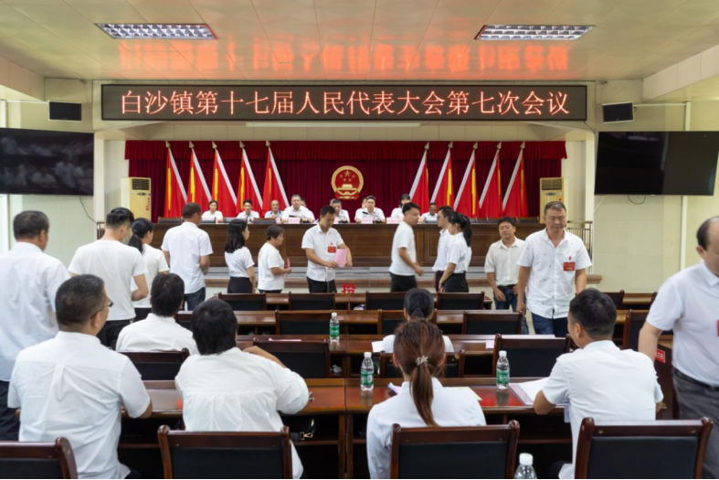 9月3日,白沙镇第十七届人民代表大会第七次会议在镇政府胜利召开。来自全镇各战线、各行业的67名人大代表出席了会议。