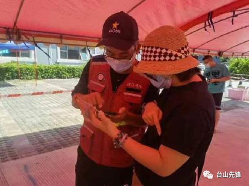 石蕉村的谢妙婷在所属网格采样点,负责测温扫码工作,遇到不熟悉智能手机,忘记携带纸质核酸码的老人家,耐心地安抚他们紧张不安的情绪,帮助他们现场制作核酸码。