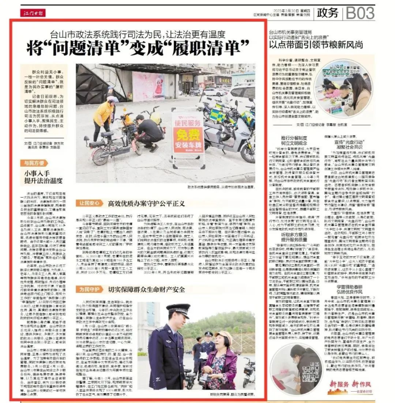 越是群众身边事,越能于细节处体现法治温度。台山市政法系统深入推进公共服务体系建设,提供多样化、多层次、多方面的政法公共服务,让群众在便民利民中体会到公平正义,感受到法治温度。