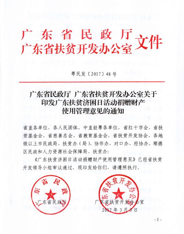 关于印发广东扶贫济困日活动捐赠财产使用管理意见的通知