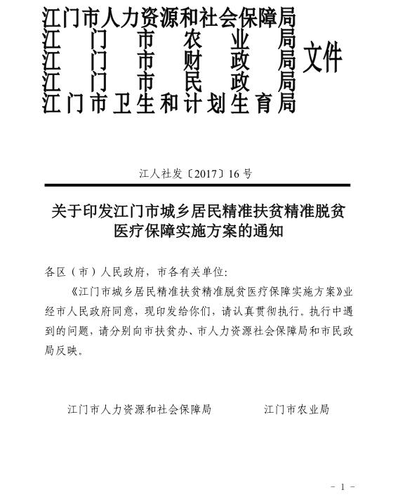 江门市城乡居民精准扶贫精准脱贫医疗保障实施方案