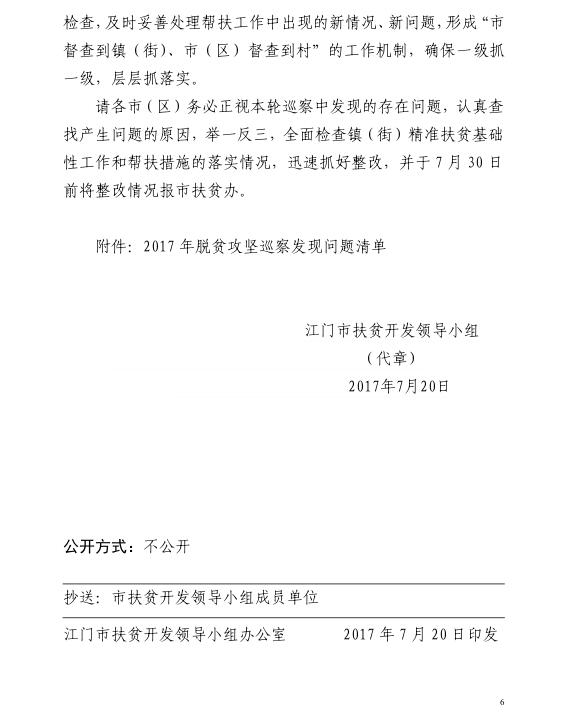 关于江门市2017年脱贫攻坚巡察工作情况的通报