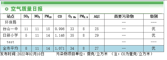 空气质量日报(2022.2.10)