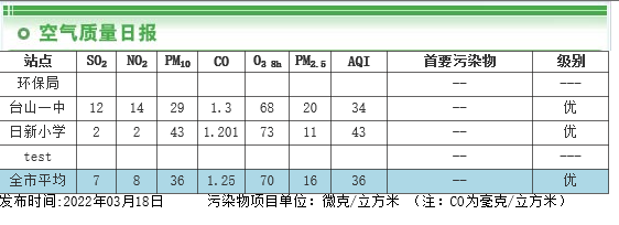 空气质量日报(2022.3.18)