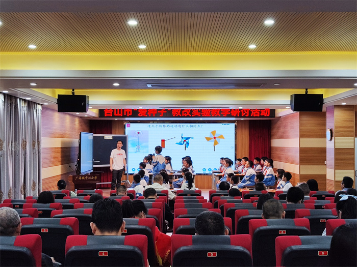 5月11日,台山市教师发展中心在广海镇中心小学举办“爱种子”教改实验语文、数学、英语教学研讨活动。市教育局党组成员、副局长黄国盼,教师发展中心副主任陈秀贞,广东能龙教育股份有限公司副总裁董那其雅,中山市教研室教研员、爱种子项目负责人辛键,中山市沙溪镇教体中心教研专干刘传明,台山市“爱种子”项目负责人及学科教研员,台山市“爱种子”实验学校分管教学负责人、相关学科教师参加活动。