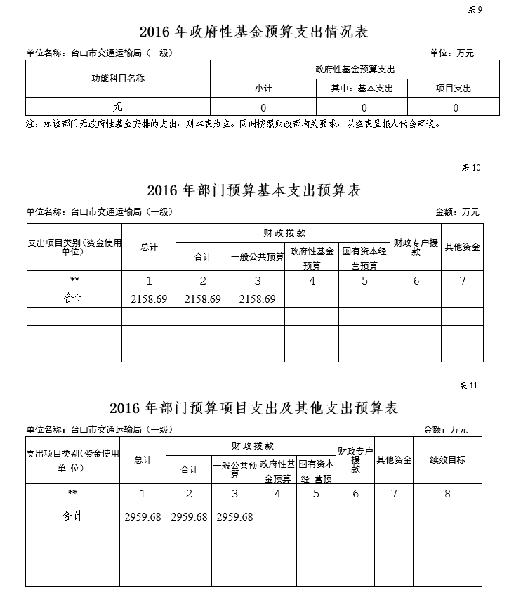 (一)本部门预算为汇总预算,包括:局本级预算,以及纳入编制范围的下属事业单位预算。下属事业单位具体包括:台山市交通管理总站、台山市地方公路管理站。