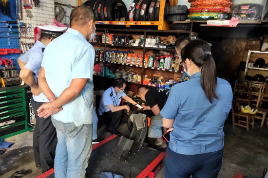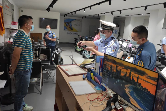 为有效净化电动车销售市场,切实从源头上消除电动车安全隐患,有效预防和减少道路交通事故发生,10月11日下午,台山市公安局交警大队联合市场监督管理局及市交通运输局,对我市部分电动车经销网点及辖区修理厂进行突击检查,坚决遏制非法摩电车辆经市场流入社会。