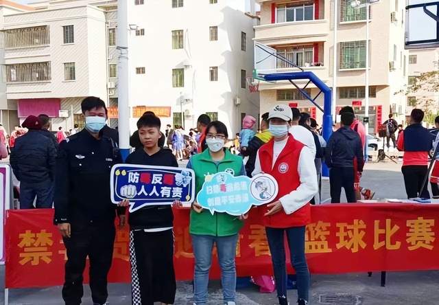新春期间,多个乡镇组织开展篮球、排球等球类运动,各镇街通过禁毒宣传与体育竞技有机结合,在球场周边悬挂禁毒宣传海报和标语,在赛事中大力宣扬全民禁毒、全民运动的理念。