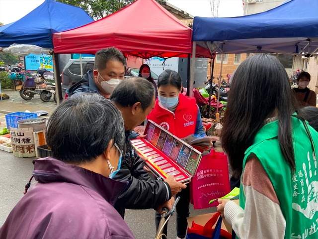 全市开展常态化“六进”禁毒宣传活动,禁毒工作人员带上仿真毒品、宣传手册和纪念品走进大街小巷,向群众派发宣传单。