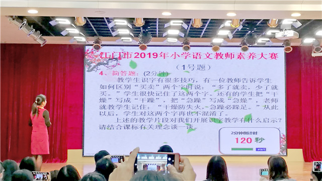 3月18—19日,台城二小雷秀娥老师代表台山参加江门市小学语文教师素养大赛。比赛在新会圭峰小学举行,来自江门三区四市的9位选手同台竞技。经过书写展示、朗读展示、才艺展示、课堂教学展示和现场答题五个环节的比拼,雷秀娥凭借扎实的基本功、丰富的知识积累、沉稳的临场发挥获得二等奖。