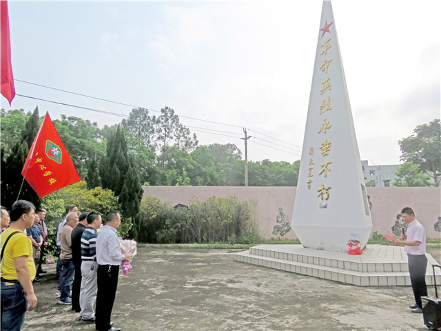 由台山解放后首任县长谢永宽题词的纪念碑上“革命英烈永垂不朽”八个镏金大字,耀眼无比,苍劲有力。党员干部在纪念碑前列成方队,伴随着庄严肃穆的乐曲追思默哀,深切缅怀革命先烈可歌可泣的不朽功绩,向烈士们表达无限的哀思和崇高的敬意。党员代表向英烈敬献鲜花。