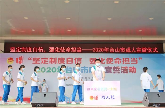 为引导广大中学生树立坚定的理想信念,培养良好的品德,进一步增强公民意识和责任意识,10月18日,团市委、市教育局、市文明办、市禁毒办在鹏权中学联合举办“坚定制度自信,强化使命担当”2020年台山市成人宣誓活动。团市委书记谢永斌、市教育局副局长李育恒、各校学生代表、家长代表以及鹏权中学全体师生共1000多人出席参加。