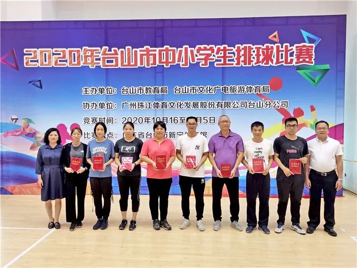 10月28日—11月5日,由市教育局、市文化广电旅游体育局主办,广州珠江体育文化发展股份有限公司台山分公司协办的2020年台山市中小学生(初中、小学组)排球比赛在新宁体育馆举行,本次共有初中组27支队伍266名运动员、小学组31支队伍353名运动员参加。