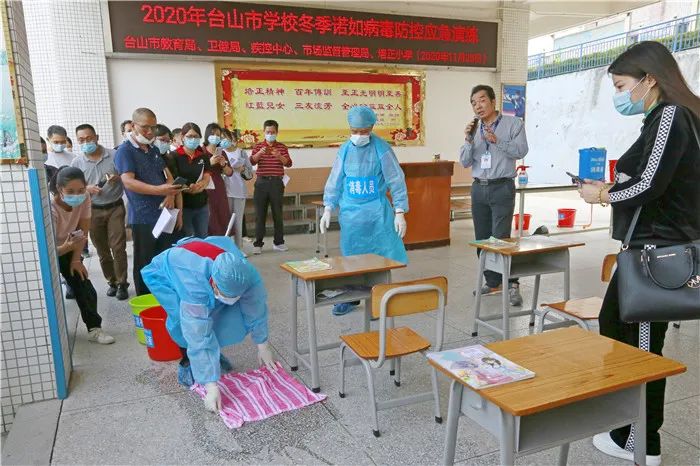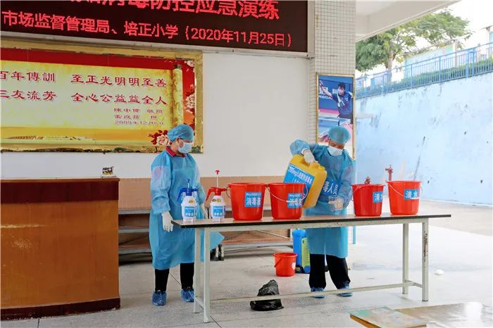 昨日(25日),市教育局、卫健局、市监局、疾控中心在培正小学联合举行学校冬季诺如病毒防控应急演练活动。活动分“信息报告及应急响应”“呕吐人员处理”“呕吐物及病例污染环境处理”“无关人员处理”“呕吐人员后续处理”等五个“突发”情景进行现场模拟演练。市有关部门负责同志,市直属学校分管副校长及校医等参加了活动。