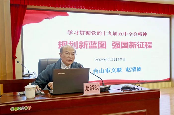 会议邀请市委宣讲团成员,市文联党组书记、主席赵清波进行宣讲。赵清波以《规划新蓝图 强国新征程》为题,从“定位,迈入新发展阶段”“定向,聚焦新发展目标”“定题,贯彻新发展理念”“定局,构建新发展格局”等方面进行了全面、深入、细致的解读和辅导。