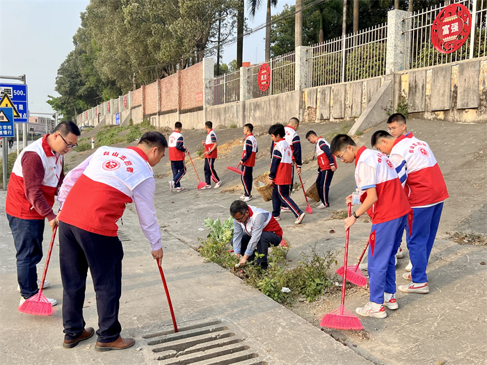 台山市武溪中学结合国旗下讲话举办“弘扬雷锋精神,建功志愿台山”学雷锋活动月启动仪式,号召同学们以实际行动诠释新时代的“雷锋精神”,肩负起属于青少年的使命与担当。学校党支部、团委、少先队联合开展了“弘扬志愿精神,争做环境小卫士”校园周边环境保洁学雷锋主题团日活动,清扫学校周边环境卫生。本次活动让团员青年和少先队将雷锋精神深植于心,争当新时代好少年。