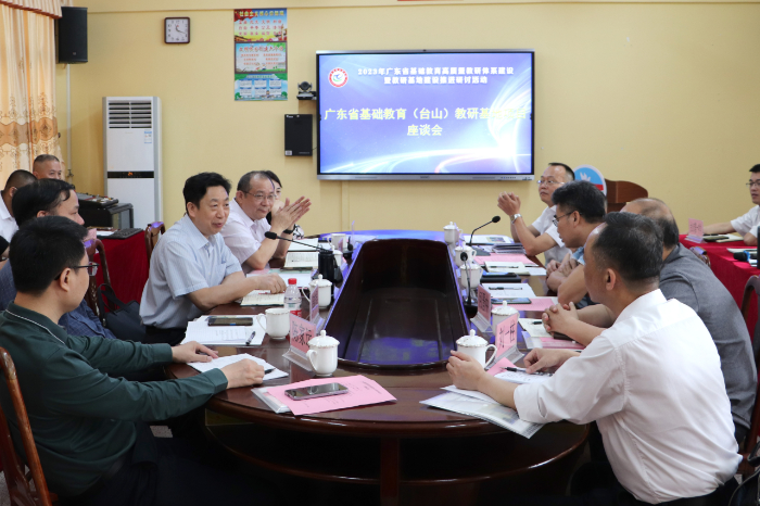 在调研座谈会上,广东省基础教育(台山市)教研基地负责人作了教研基地项目建设情况汇报,台山一中、新宁中学、水步镇中心小学、马兰芳幼儿园等8所基地学校先后作了基地学校建设工作汇报,省、市两级专家团队分别对各单位工作开展情况进行点评,并提出工作建议。