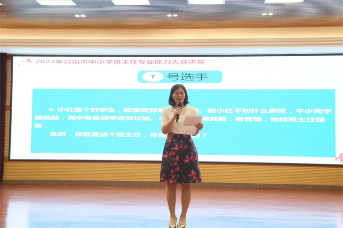 本次大赛让我们看到了参赛班主任的应变能力,也看到了他们的教育激情与活力。各位参赛选手沉着淡定,运用现代教育理论和教育原则,对班主任工作的难点和热点问题进行分析和处理,解决对策得当,思路创新,体现班主任的教育智慧和班主任娴熟的工作技能技巧。这项比赛是台山市优秀班主任培养锻炼和学习交流的重要平台,是加强班主任队伍建设的有力举措。