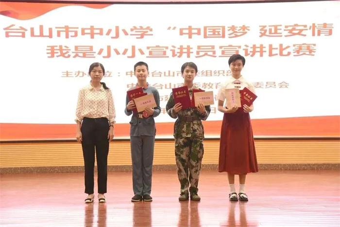 凭借充分的赛前准备、出色的临场表现,经过紧张激烈的角逐,新宁小学雷雅晴、城东小学阮涵钰、台山居正学校黄婷婷荣获小学组一等奖;新宁中学杨棋羽、 新宁中学张子涵、广大台山附中雷雅茵荣获中学组一等奖。苗雅晴、杨棋羽等16名选手获聘为“台山市教育系统延安精神小宣讲员”,后续将到全市各中小学巡回宣讲。