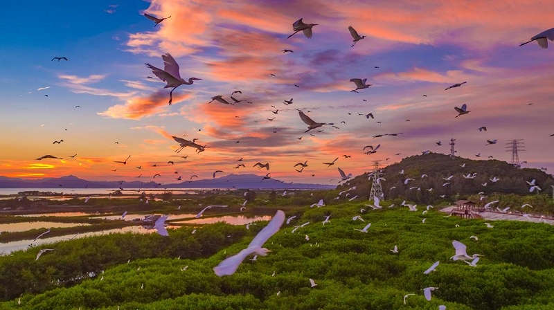 本线路为台山沿海科普游线路,游览此线,您将穿梭参天古木,走进湿地红树林,看落霞与白鹭齐飞,海浪共石林一色。
