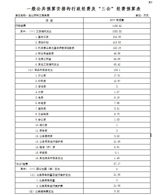 八、一般公共预算安排的行政经费及“三公”经费预算表