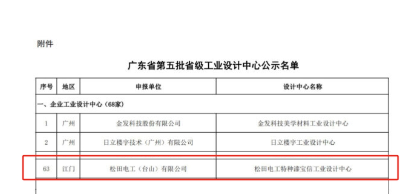 我市松田科技股份有限公司被评为广东省第五批省级工业设计中心,是本批次江门地区唯一一家获评企业。
