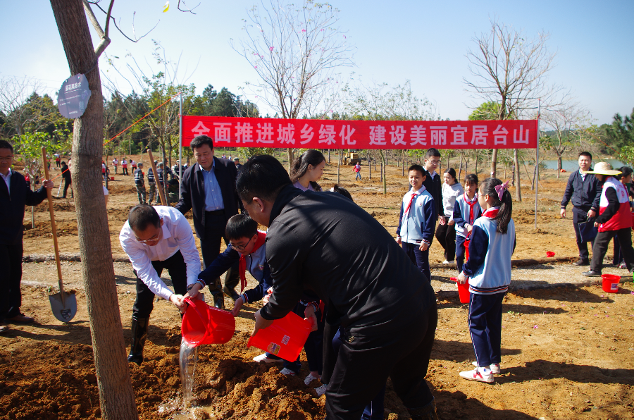 三月好春光,义务植树正当时。3月12日上午,在我国第46个植树节,江门市政协主席张磊带领江门市政协领导班子、台山市委书记郑劲龙等市四套领导班子来到台山市红岭种子园植树点,与市直机关单位代表、人大代表、政协委员代表、民主党派代表、企业家代表、青年学生和志愿者代表等250余人一起参加义务植树活动,种植乔灌苗木550株。与此同时,全市各镇(街)也积极组织开展植树活动,全市总计参加人数2200人,种植苗木8200株,以实际行动贯彻落实《中共广东省委关于深入推进绿美广东生态建设的决定》,带动全市上下掀起春季绿化热潮,共同为台山增添绿色底蕴,厚植台山高质量发展的生态优势。
