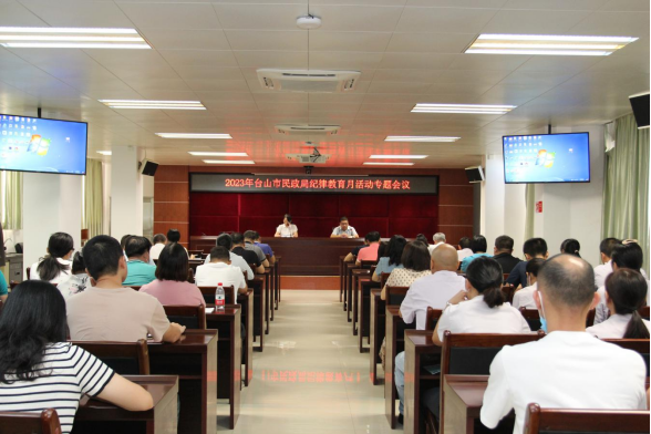 9月5日,市民政局召开纪律教育学习月活动专题会议,党组成员、市社会组织党委专职副书记陈淑清同志宣读《2023年民政局开展纪律教育学习月活动的实施方案》,党组书记、局长陈卓豪同志作讲话。领导班子成员、局机关全体党员干部和下属单位全体党员干部参加会议。