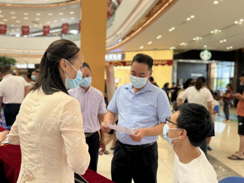为贯彻落实党的二十大精神,帮助台山市企业解决人才和用工需求,推动高校毕业生及就业困难人员等重点群体高质量充分就业,6月11日下午,台山市人社局在台城昌大昌商场举办“职引未来,筑梦青春”——2023年台山市“百日千万招聘专项行动”暨高校毕业生专场招聘活动,现场人潮攒动,吸引了不少高校毕业生等求职者。
