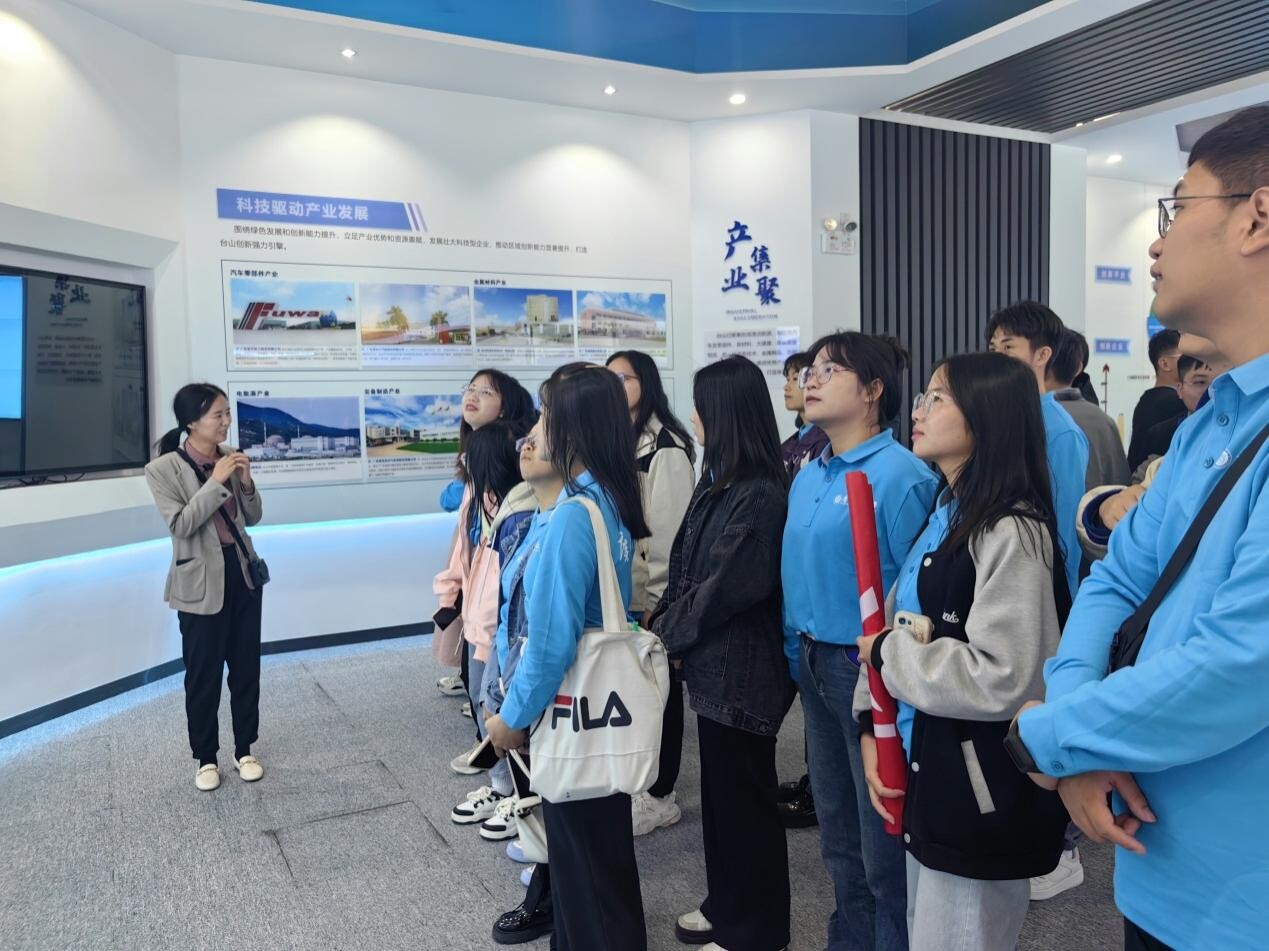 接着先后前往台山市工业新城管理委员会、台山市松田电工(台山)有限公司、广东鸿特精密技术(台山)有限公司、台山市冠兴金属有限责任公司、台山市金桥铝型材厂有限公司、台山市广生家居用品有限公司、广东玫瑰岛卫浴科技有限公司等重点企业参观调研,对各企业的展厅、生产车间、实验室等进行参观,了解各种产品生产流程和数智化的设施设备。在参观期间,企业相关负责人向广西科大的师生介绍员工的工作时长、薪酬待遇、假期保障、生活环境等情况。校企双方也一边交流探讨学生顶岗实习、见习就业和企业技术创新和生产运用等方面的合作意向。