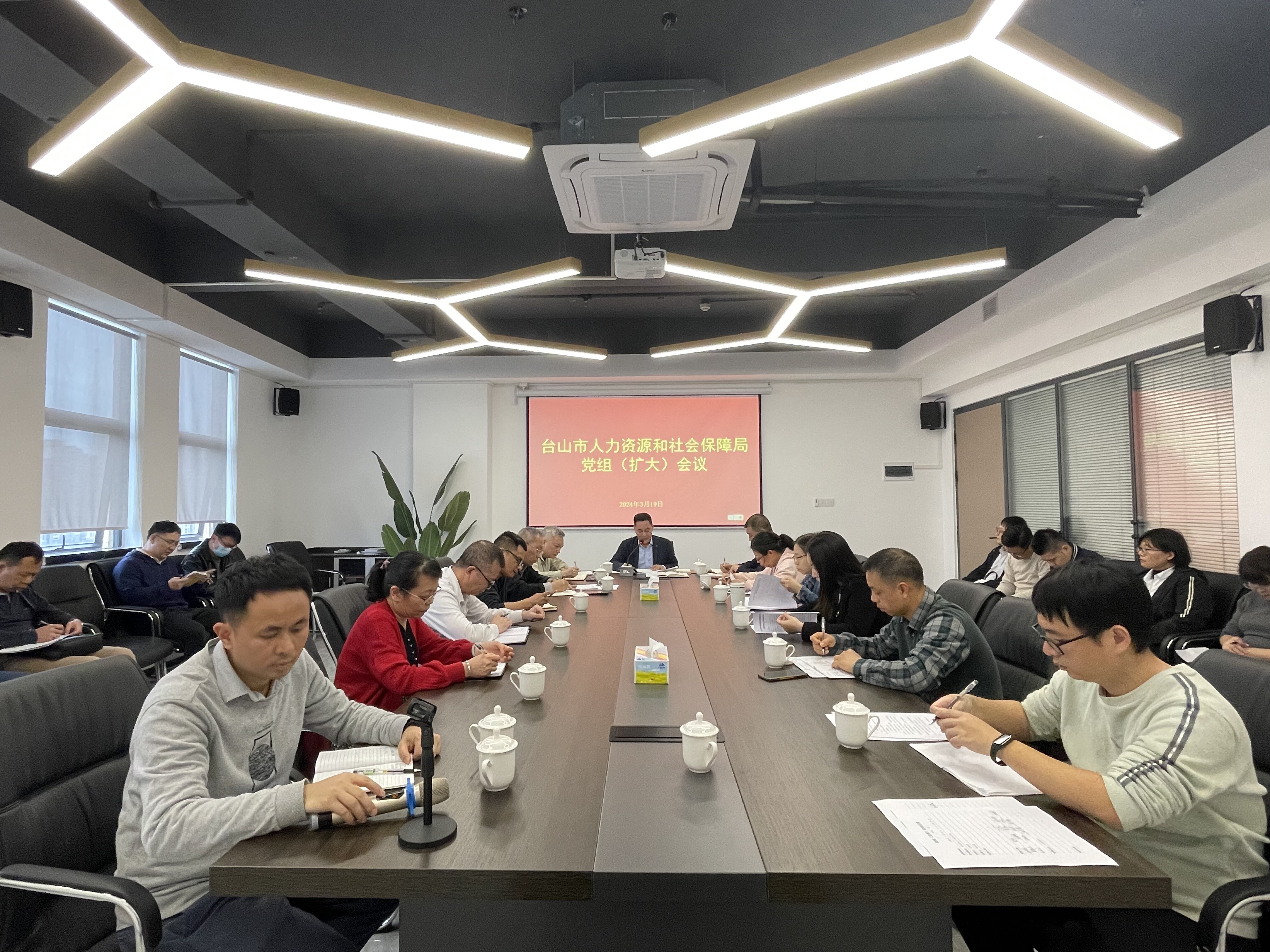 3月19日,台山市人力资源和社会保障局召开党组(扩大)会议,传达学习贯彻习近平总书记在全国两会期间重要讲话精神、李强总理参加广东代表团审议时的讲话精神和全国两会精神,传达学习省、江门、台山有关会议精神,部署贯彻落实工作。局党组班子成员,局内设股室、下属单位负责人参加会议,局党组书记、局长赵湖滨主持会议并讲话。
