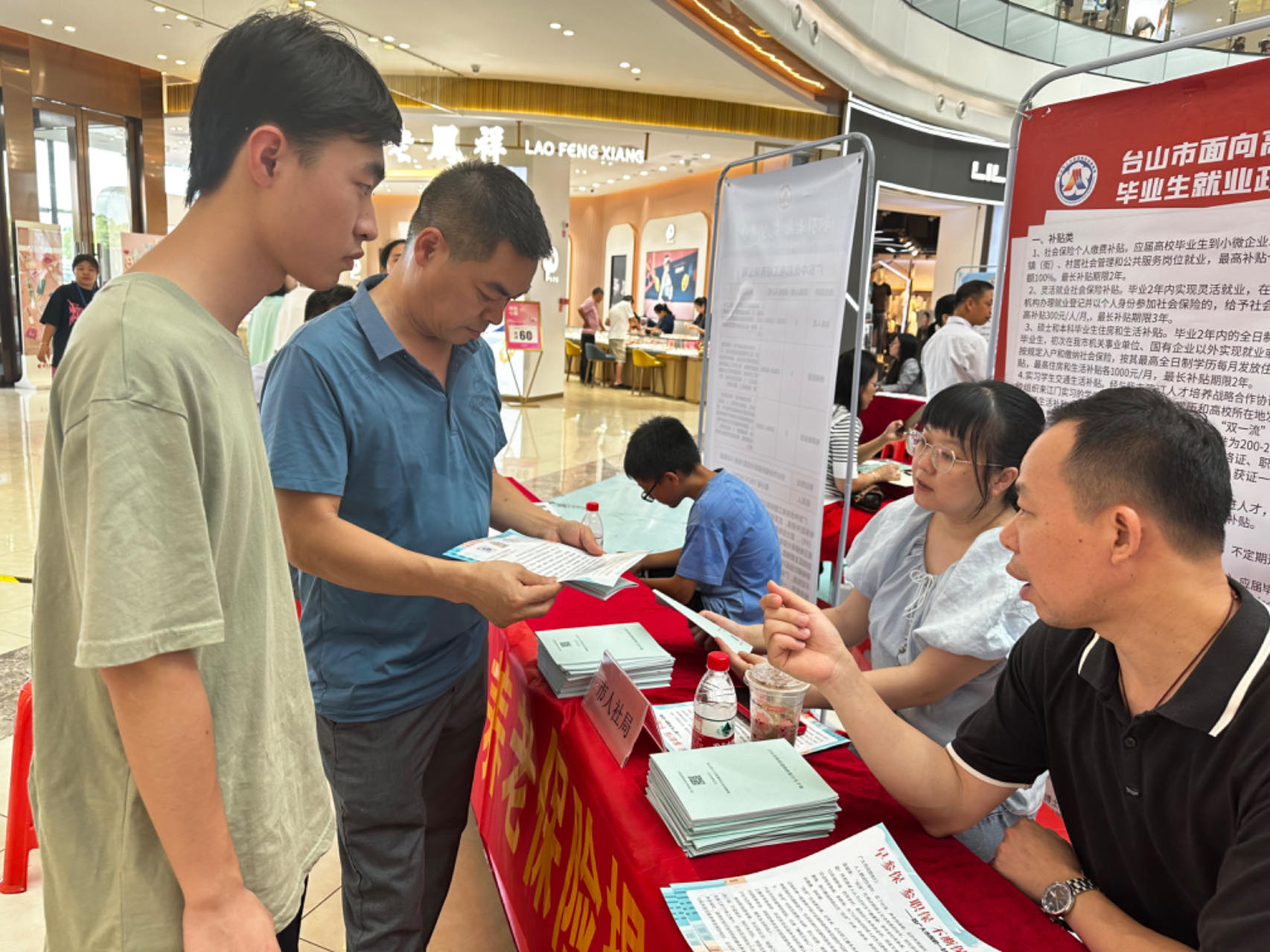 为切实做好高校毕业生等青年群体就业服务工作,促使各类型人才求职者多渠道就业,帮助企业解决急需紧缺的用工难题,8月9日,台山市人社局在昌大昌广场举办2024年台山市“百日千万招聘专项行动”暨高校毕业生专场招聘会,并同步开启线上直播,为怀揣梦想的高校毕业生及广大求职者搭建求职“云”桥。