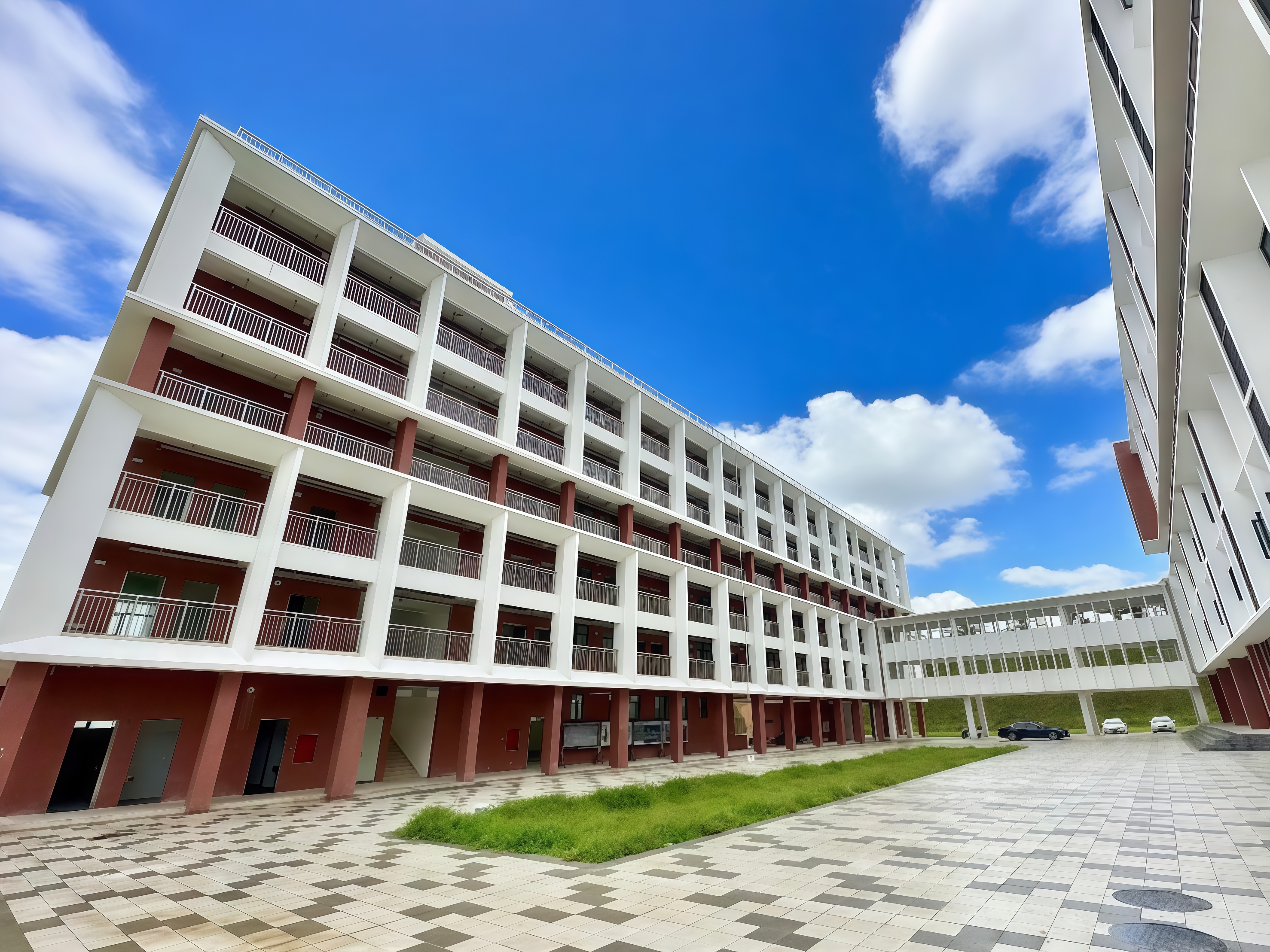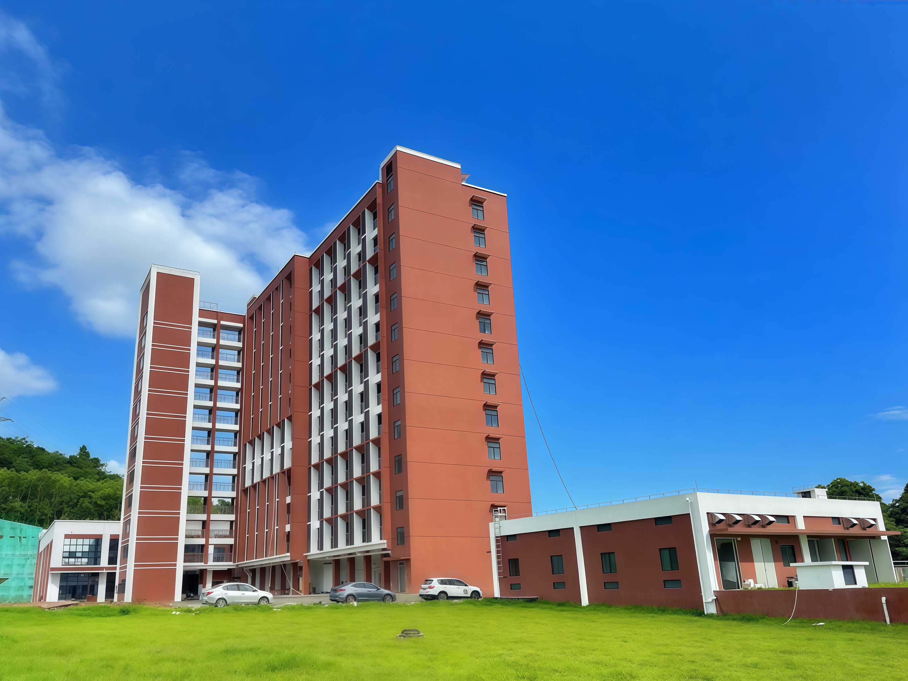 新校区作为学校扩大办学规模、提升办学层次、全力创建高级技工学校、冲刺技师学院的核心工程,既是台山市委、市政府优化区域职业教育布局、助力地方产业高质量发展的重要民生工程,也是学校积极响应国家职业教育改革发展战略的关键举措,更是办学历史上浓墨重彩的一笔,具有划时代的深远意义。目前,新校区已圆满完成一期建设。如今,红白相间的教学楼群错落有致,12层高的宿舍楼配备直达电梯,山湖相映、绿树成荫的优美环境宛如天然山水画卷,让每一位踏入校园的师生都满怀憧憬与喜悦,沉浸在宜居宜学的新家园之中。
