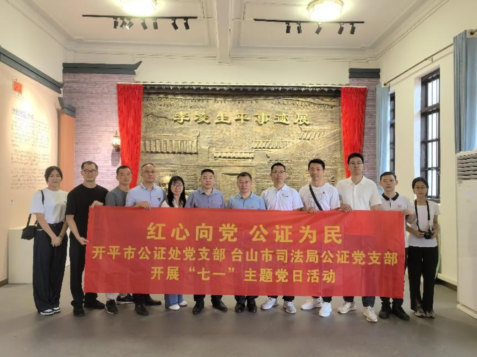 627日,台山市公证处和开平市公证处联合开展“红心向党、公证为民”主题党日活动,引领业务深度融合。