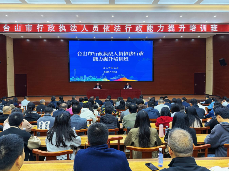 为扎实推进法治政府建设,切实提升行政执法规范化、专业化水平,12月4日,台山市举办全市行政执法人员依法行政能力提升专题培训班。培训班特别邀请江门市司法局专家参与授课,联合市府办、市司法局、市人社局、市文广旅体局、市市场监管局、市交通运输局、市应急管理局共8大单位的业务骨干联袂开课,面向市直及镇(街)近300名一线执法人员开展精准靶向教学。