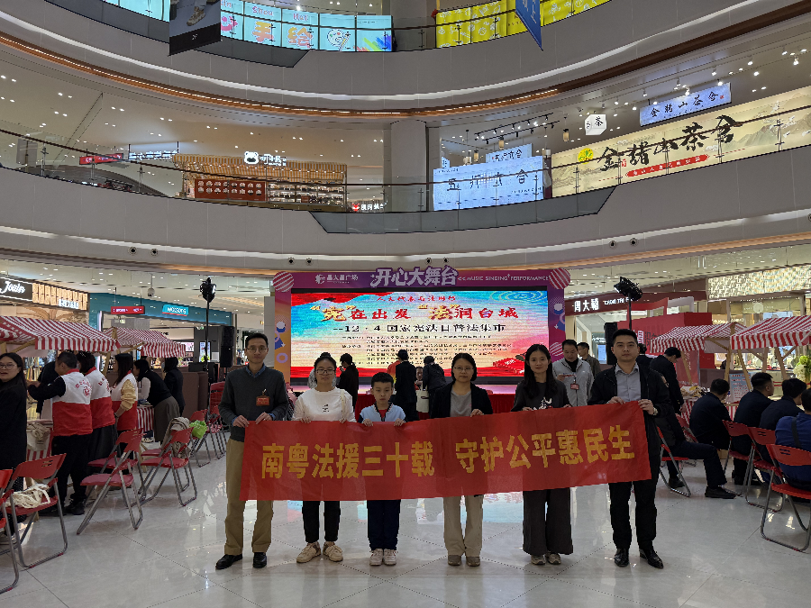 在“12·4”国家宪法日暨广东省法律援助制度建立实施30周年之际,为深入学习宣传贯彻习近平法治思想,弘扬宪法精神,提升法律援助知晓率,市司法局联合市人大、海关等10余个部门单位,在台山市昌大昌广场举办“‘宪’在出发 ‘法’润台城”法治宣传活动,推动法治服务直达基层、惠及民生。