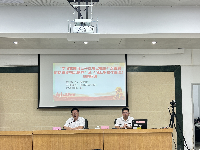 为深入贯彻党的二十大精神,坚持不懈用习近平新时代中国特色社会主义思想凝心铸魂,7月19日,市审计局举办学习贯彻习近平总书记视察广东重要讲话重要指示精神和《习近平著作选读》第一卷、第二卷宣讲会,特邀请市委宣讲团成员、市委宣传部副部长罗棠波作专题宣讲,市审计局全体党员干部参加。
