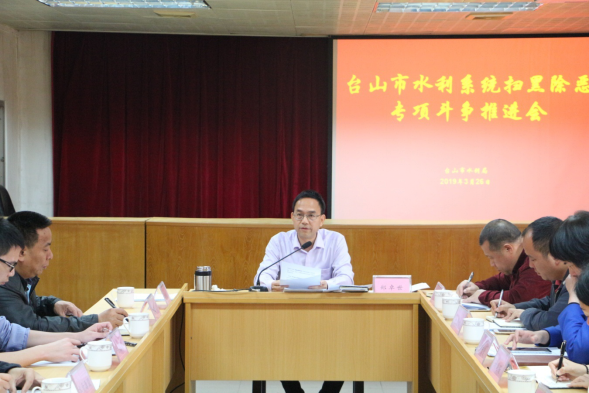 3月26日上午,为进一步推进扫黑除恶专项斗争,市水利局在局机关七楼召开全市水利系统扫黑除恶专项斗争推进会。会议由市水利局党组书记、局长郑卓世主持,局领导班子,机关各股室、下属单位负责人参加会议。