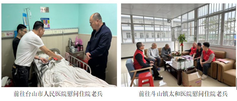 其中,台山市爱国拥军促进会联合台山市退役军人服务中心看望住院老兵,亲手将慰问物资送到住院老兵手中,为他们送上一份岁末暖冬里的关怀“礼包”。在病房内,会长王进荣与老兵亲切交谈,关切地询问了他的病情和治疗康复情况,鼓励他树立信心、战胜病魔,叮嘱家属一定要照顾好老人,希望老兵早日康复,安享幸福生活。