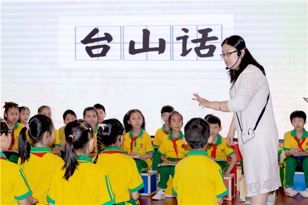 课堂上,主讲老师从台山民歌的文化背景、特点入手,结合图片、视频、游戏等趣味方式,带领学生们学唱《爹爹去金山赚钱》《侨乡欢迎你》等台山民歌。歌曲朗朗上口,通俗易懂,节奏活泼,旋律优美,孩子们认真地配合着手势逐句学习,在课堂中感受传统台山民歌的魅力。学生纷纷表示:用台山话演唱的台山民歌很好听,很有趣!