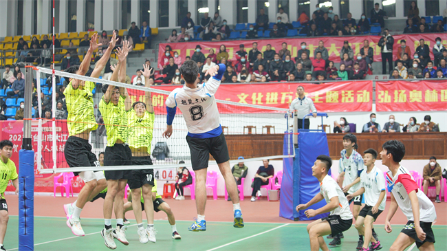 为传承排球文化,擦亮排球之乡品牌,今年春节,白沙、斗山、海宴、北陡、大江等镇九人排球赛精彩开打,各镇的比赛现场群众参与热度持续高涨,体育场馆几乎座无虚席,如斗山镇的排球赛首日便有近40万人线上观看,三天共17场比赛,线上线下累计超77万人观赛。