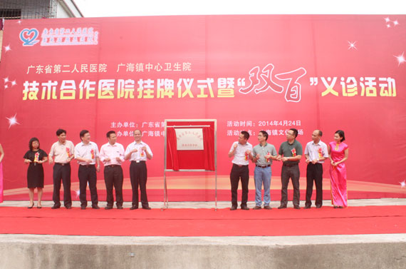 4月24日,省第二人民医院与广海中心卫生院在广海镇文化广场举行技术合作单位挂牌仪式,并开展“双百”大型爱心义诊活动。这是我市卫生计生系统深入推进群众路线教育实践活动一次重要体现。省第二人民医院及我市卫计局、广海镇政府、广海中心卫生院等单位领导和群众800多人参加了当天的活动。