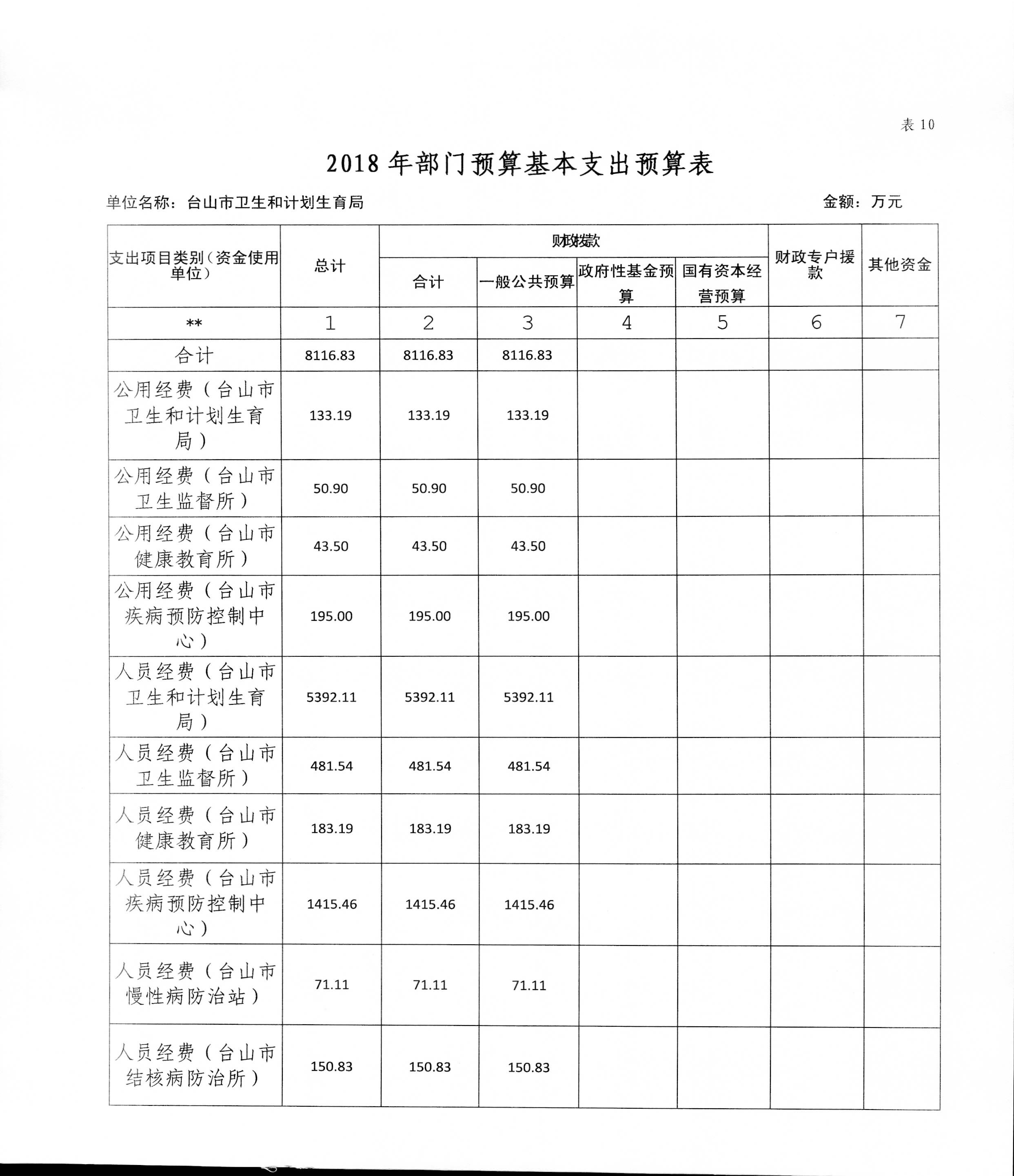 (一)本部门预算为汇总预算,包括:局本级预算,以及纳入编制范围的下属单位预算。下属单位具体包括:台山市卫生监督所、台山市疾病预防控制中心、台山市结核病防治所、台山市慢性病防治站、台山市健康教育所。