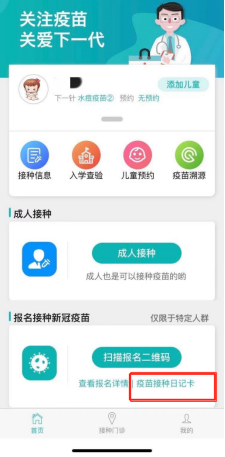 三、返回到APP首页,进入“接种日记卡”模块进行填报。接种后7天内每天均需填报。