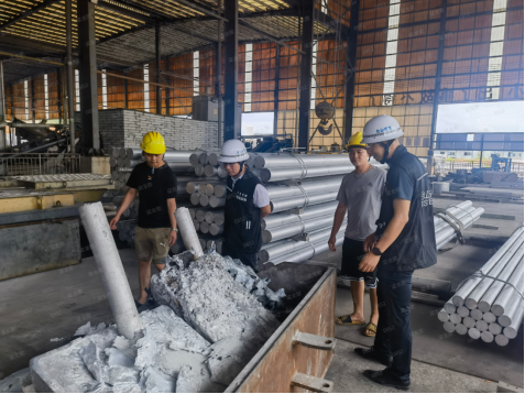 图为:5月5日检查组一行对锦洲卓越铝业有限公司进行现场督查