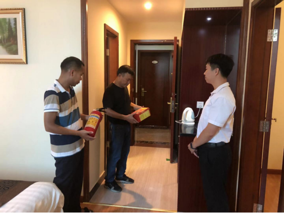 检查中发现个别单位疏散指示标识设置不足、灭火器配置不足、消火栓检查记录填写不完善、电气线路敷设不符合规范要求等安全隐患,并现场对消火栓进行了详细测试。