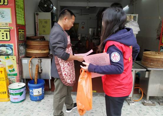在环北大道上,全体人员统一穿着义工服,分工合作、各负其责。部分人员负责进行入户上门宣传,为门店经营者详细讲解有关创文工作的文件精神并分发“文明一个人,温暖一座城—致全体市民的一封信”,劝导大家遵守文明公约,踊跃参与到国家级文明城市的创建活动中。